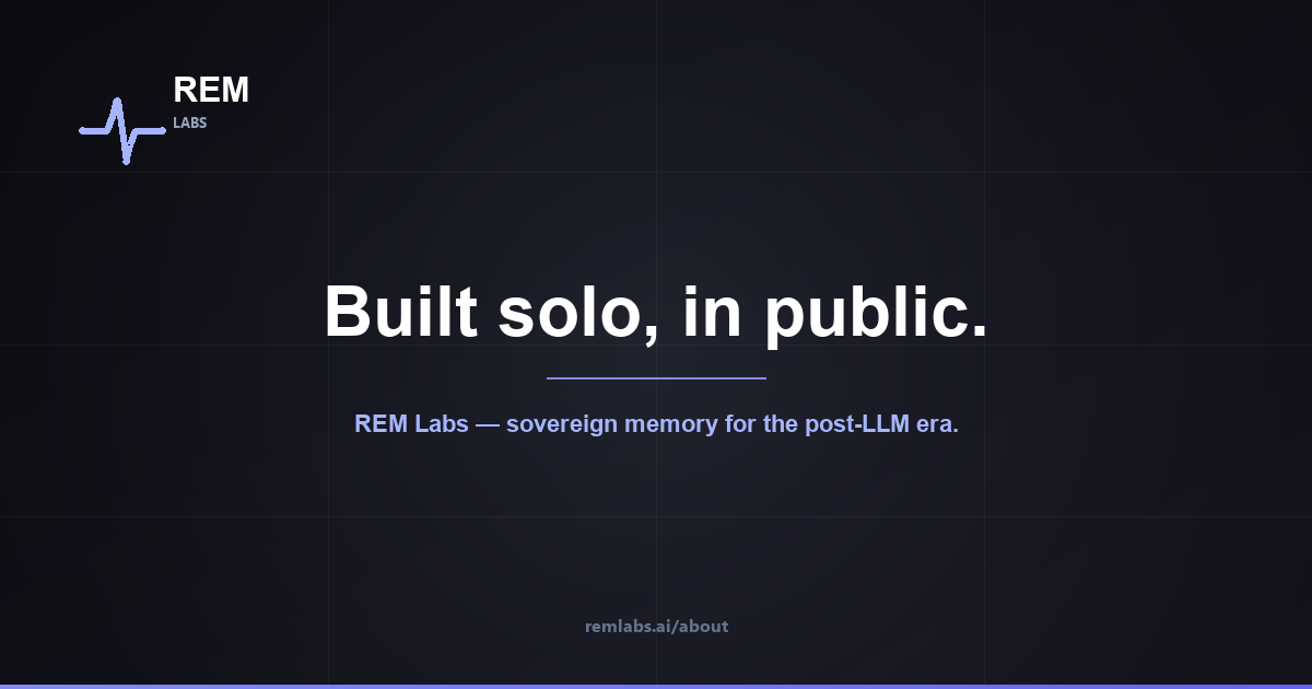 REM Labs is operated by Slopshop Inc. (Delaware C-corp). Founded 2026. Bootstrapped. Shipping in public.