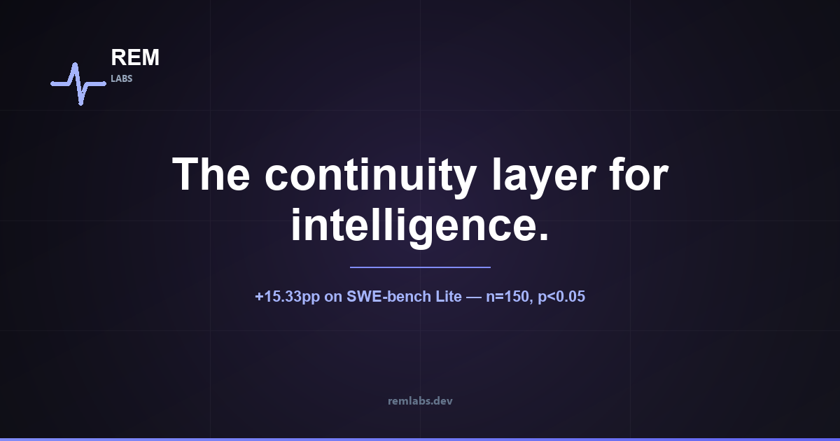 // Five calls. Same shape across Python, Node, CLI, MCP. import { rem } from '@remlabs/sdk'; await rem.store({ key: 'pref_drink', value: 'user prefers cold-brew, oat milk', namespace: 'agent_42', }); const hits = await rem.recall({ query: 'morning routine', namespace: 'agent_42', }); await rem.dream({ strategies: ['consolidate'] });